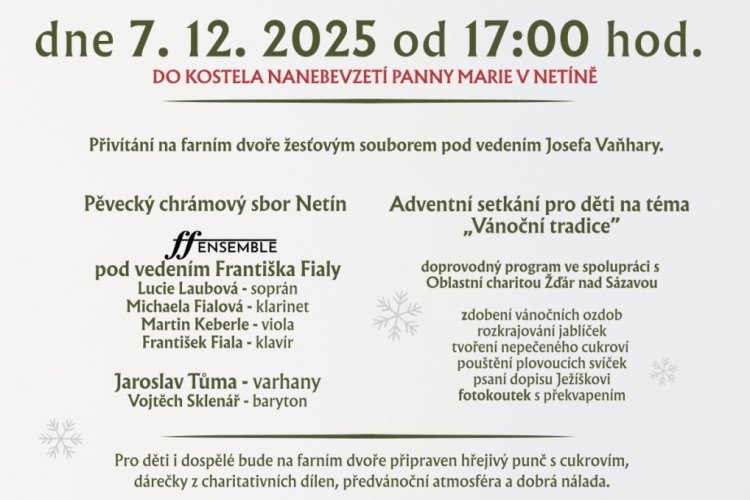 Adventní koncert v Netíně - 7. prosince 2025