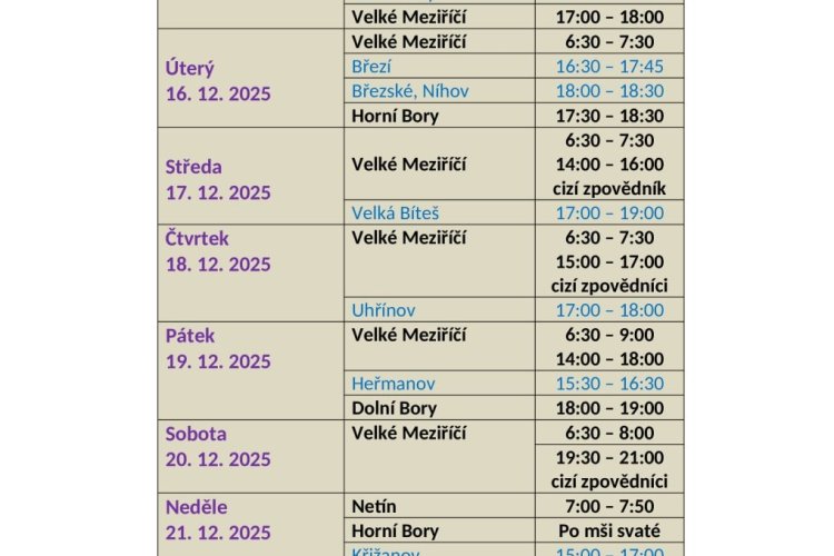 Svátost smíření před Vánocemi 2025 v děkanství velkomeziříčském