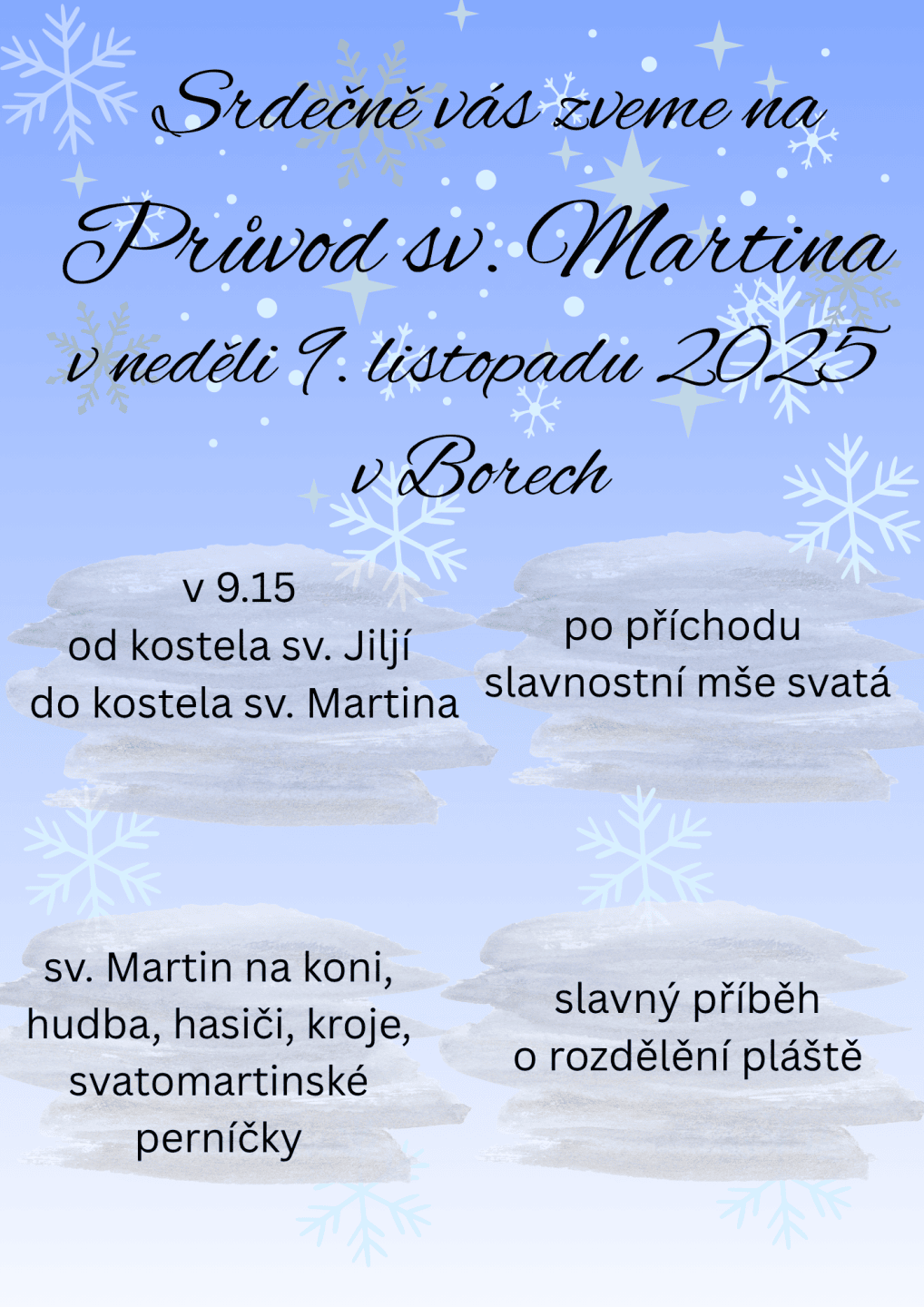 Poutní slavnost v Borech a průvod sv. Martina - neděle 9. listopadu
