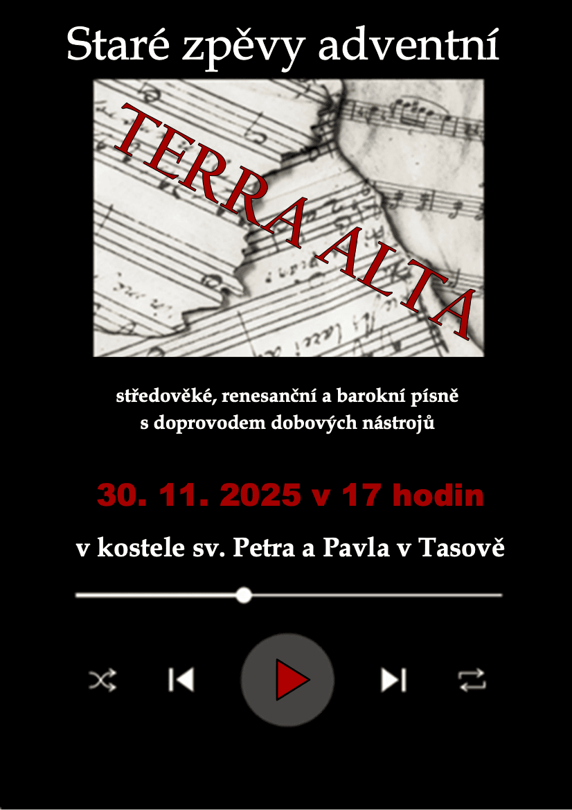 Předáváme pozvání kapely TERRA ALTA na koncert s adventními zpěvy, který se uskuteční: