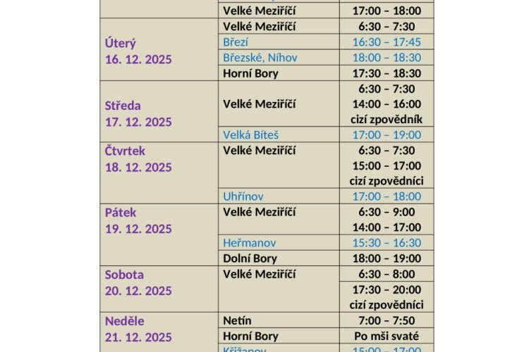 Svátost smíření před Vánocemi 2025 v děkanství velkomeziříčském